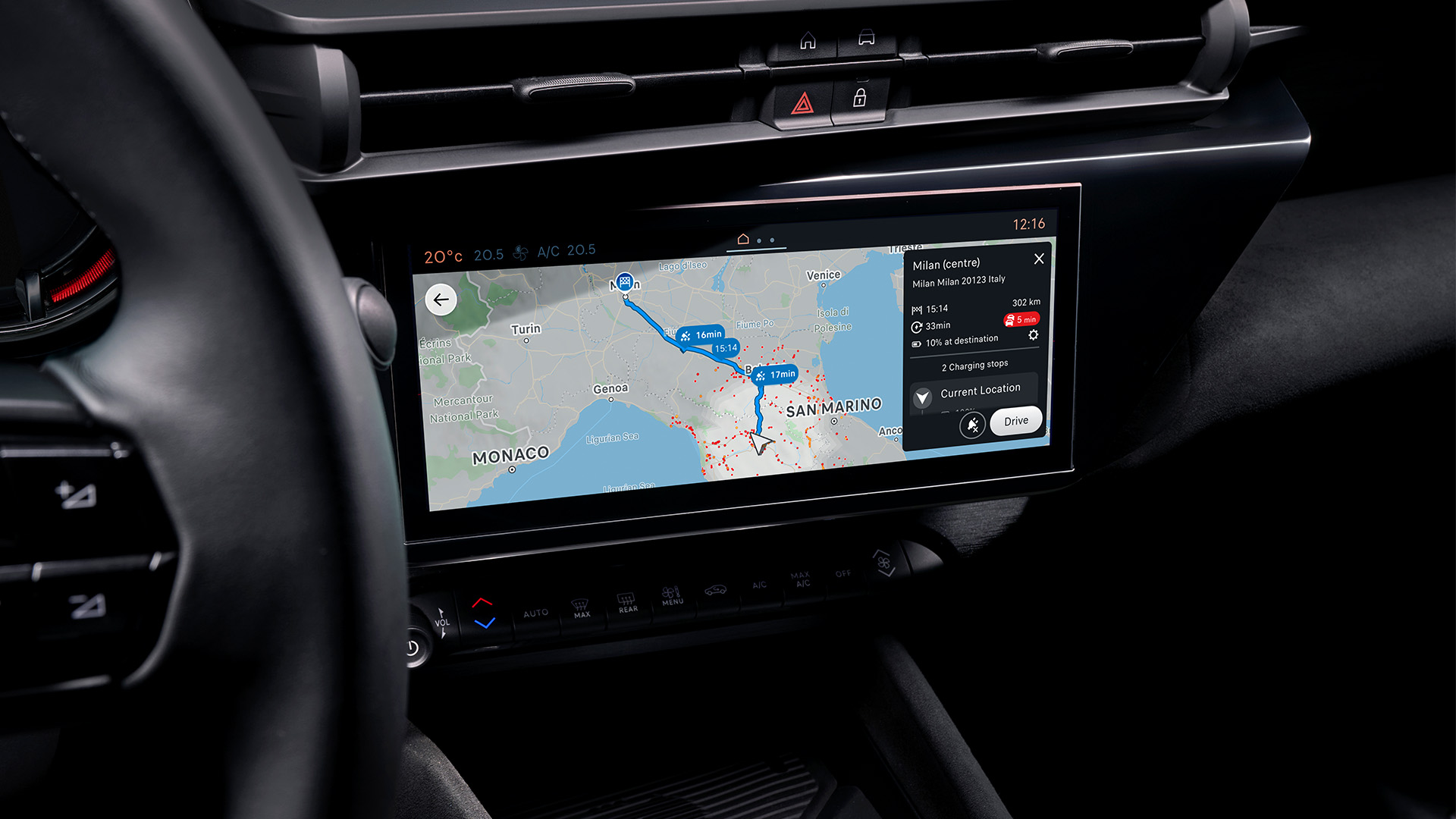 Em geral, a autonomia dos automóveis elétricos depende de fatores como o tamanho da bateria, as condições de condução, a temperatura, a climatização e os hábitos de condução. O Alfa Romeo Junior Elettrica oferece uma autonomia combinada WLTP de 410 km e inclui funcionalidades para reduzir a ansiedade de autonomia, tais como aplicações e soluções integradas para o planeamento de viagens e para encontrar estações de carregamento próximas, proporcionando-lhe tranquilidade durante a condução.