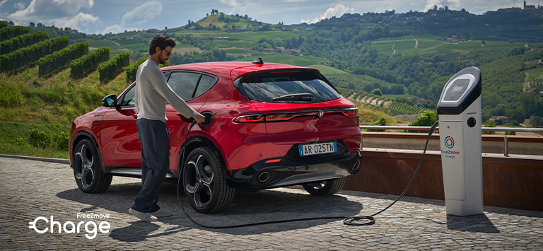 Através do sistema de infoentretenimento do veículo ou da aplicação móvel My Alfa Connect. Durante o carregamento individual em casa, terá a possibilidade de programar a hora de carregamento preferencial durante a noite, por exemplo) e escolher o nível de energia do programa de carregamento através de uma secção dedicada no sistema de infoentretenimento.