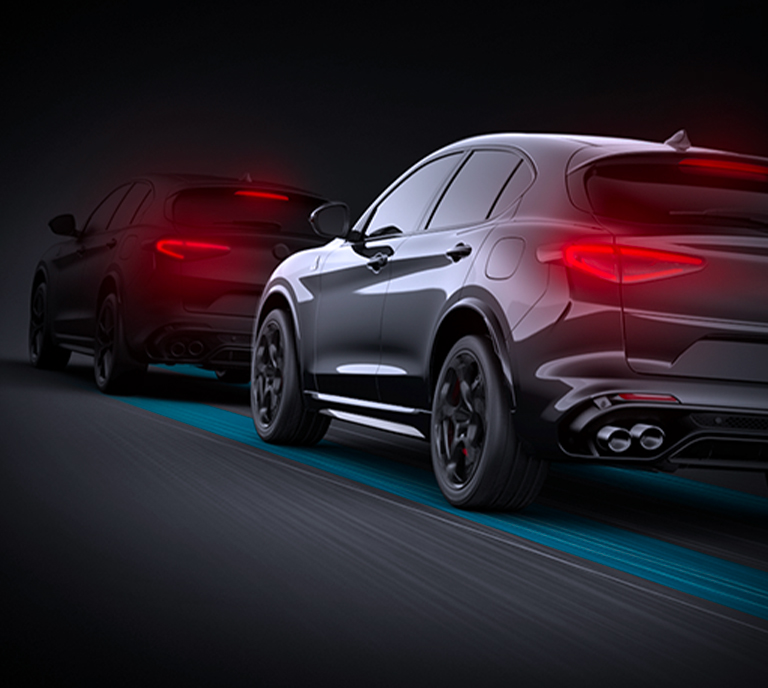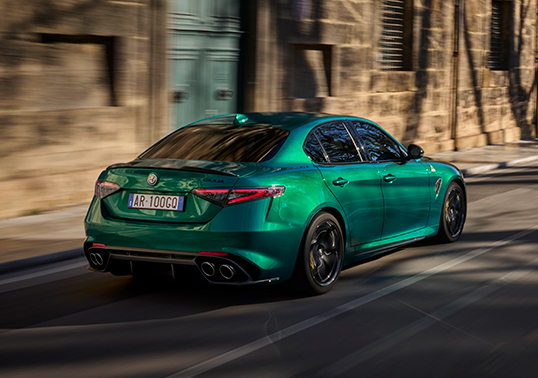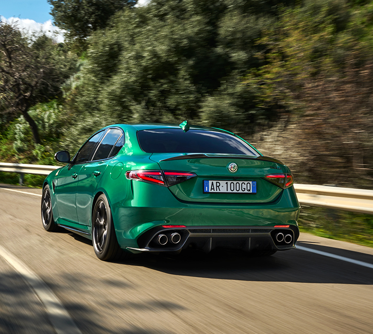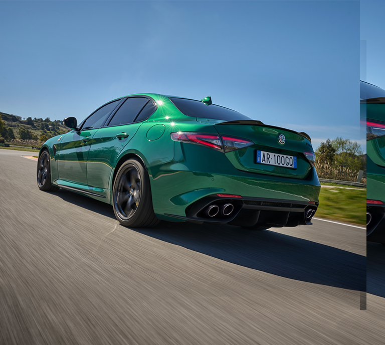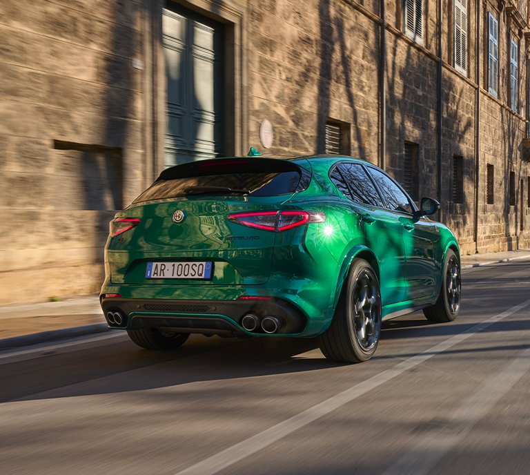 Consumo de combustível da gama Stelvio Quadrifoglio (l/100 km): 11,8; emissão de CO2 (g/km): 267. Valores determinados com base no ciclo ponderado WLTP, actualizados a partir de 4 de Abril de 2023 durante as actividades de ensaio de pré-aprovação, podendo variar antes da homologação final. Os valores indicados são para fins comparativos: Consumo de combustível Gama Giulia Quadrifoglio (l/100 km): 10,1; CO₂ emissão (g/km): 229 - 228.