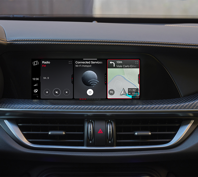 A Série Especial Quadrifoglio 100° Anniversario apresenta soluções tecnológicas avançadas que satisfazem até as mais elevadas expectativas de performances excecionais. Um ecossistema de serviços digitais integrados concebido para proporcionar uma experiência de condução incomparável.
