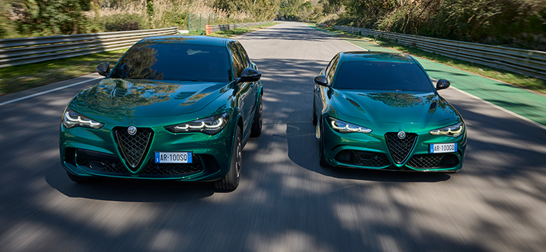 100 modelos de Stelvio Quadrifoglio. 100 modelos de Giulia Quadrifoglio. A série especial Quadrifoglio 100° Anniversario presta homenagem à história lendária das versões mais desportivas de Giulia e Stelvio, unindo o desempenho ao design italiano.