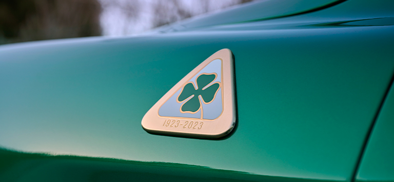 Um símbolo de quatro folhas que se tornou numa lenda para a Alfa Romeo desde o sucesso na Targa Florio de 1923 de Ugo Sivocci, conhecido como "o Eterno Segundo" até ao dia em que tudo mudou. Hoje o Quadrifoglio significa muito mais do que sorte: é um emblema de esforço, atenção aos detalhes, sacrifício, ousadia e desempenho. Em honra do centenário, o Centro Stile deu-lhe um novo toque de prestígio com nuances douradas, também presente nas pinças e na elegante costura interior.