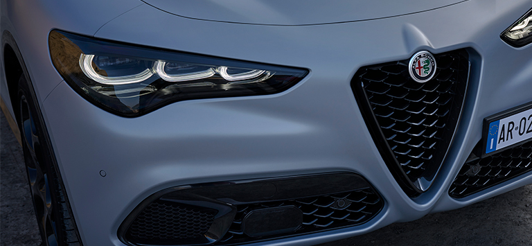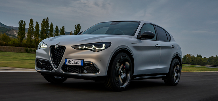 Consumo Alfa Romeo STELVIO autonomia (l/100 km): 9,0 –5,8 ; Emissão de CO2 (g/km): 203,8 –152,0. Valores determinados com base no ciclo ponderado WLTP, atualizados a 30 de setembro de 2022 durante as atividades de testes de pré-aprovação e podem variar antes da homologação final.