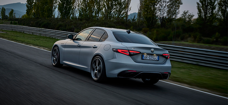Consumo de combustível Gama Alfa Romeo GIULIA (l/100 km): 8,11 –4,99; Emissão de CO2 (g/km):184,4 –130,8. Valores determinados com base no ciclo ponderado WLTP, atualizados a 26 de setembro de 2022 durante as atividades de testes de pré-aprovação e podem variar antes da homologação final.