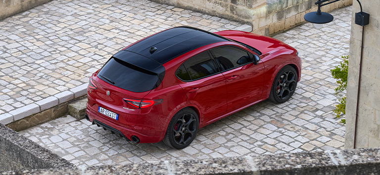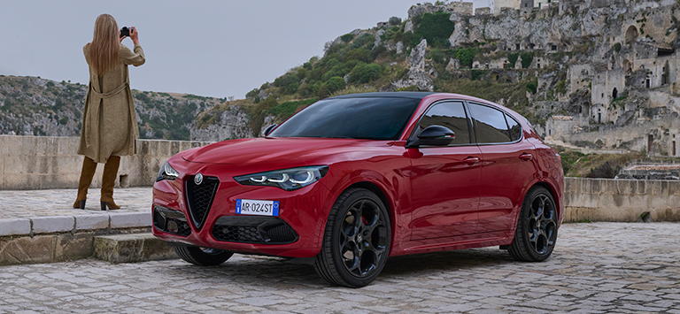 Consumo de combustível Alfa Romeo Stelvio Tributo Italiano (l/100 km): 8,9 - 5,7; Emissão de CO₂ (g/km): 202 - 150. Valores de homologação determinados com base no ciclo combinado WLTP, homologado a partir de 21.11.2022. Os valores indicados são para efeitos comparativos.