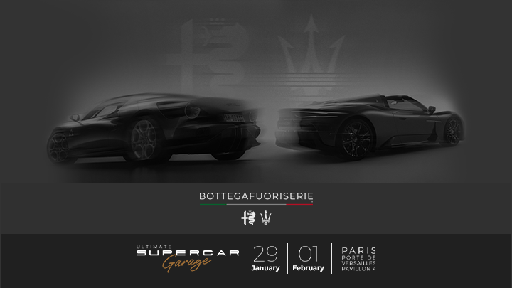 A BOTTEGAFUORISERIE faz a sua primeira aparição pública na Ultimate Supercar Garage, o novo evento dedicado aos supercarros contemporâneos, realizado durante a 50ª edição da Rétromobile na Paris Expo Porte de Versailles, de 29 de janeiro a 1 de fevereiro de 2026. Neste palco de prestígio, a Alfa Romeo e a Maserati assumem o protagonismo juntas, unidas por um projeto visionário que reúne a excelência das duas marcas italianas num único universo criativo.